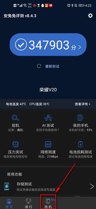 - 性能跑分:全新3D场景,真实反映手机性能。