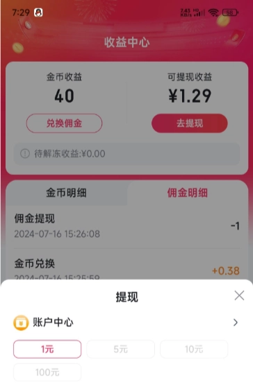 金币支持随时兑换现金,只要账户内金额满1.00元就能申请提现至支付宝,而且是实时到账。