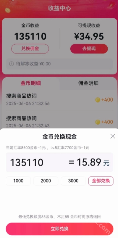 -随着等级的提高,金币兑换现金的比例会有所下降,比如Lv1推荐官兑换1元需要16000金币,Lv4推荐官兑换1元则只需要8500金币。