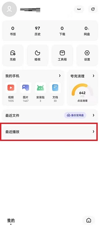 打开夸克应用,进入首页后,点击界面右下角的个人主页按钮,即可进入个人主页界面。