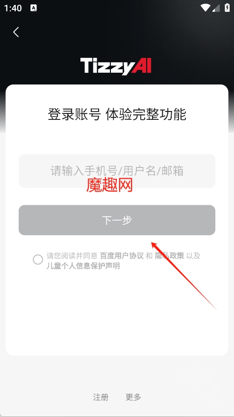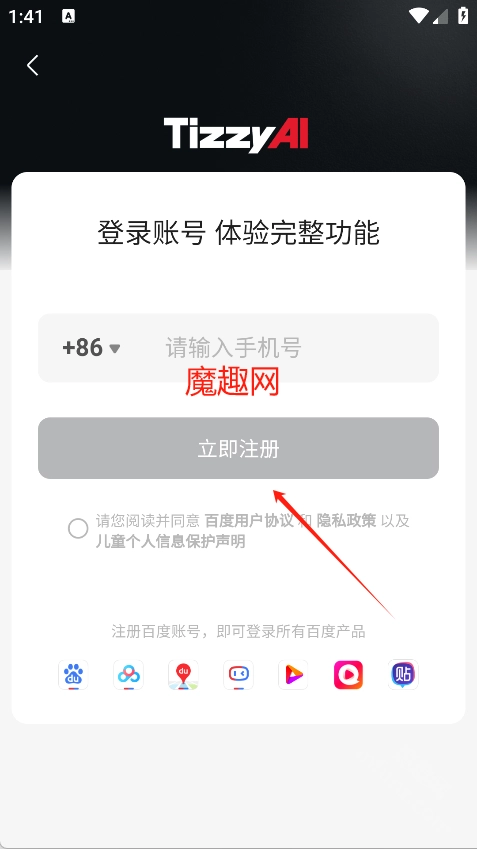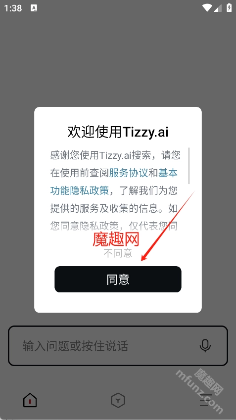 打开Tizzyai软件点击同意进入软件