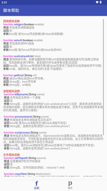在脚本的帮助文档里,我们可以查询到函数与属性的相关信息。