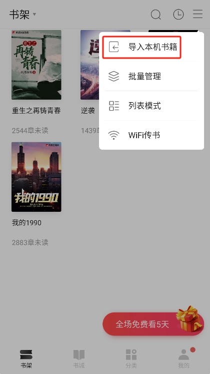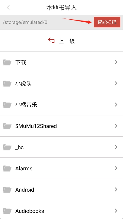 导入本地书籍的操作步骤如下:点击界面上的“导入本机书籍”按钮,系统随即会对手机内存储的本地书籍进行扫描。