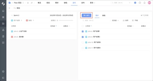 在需求待办列表批量移入迭代: