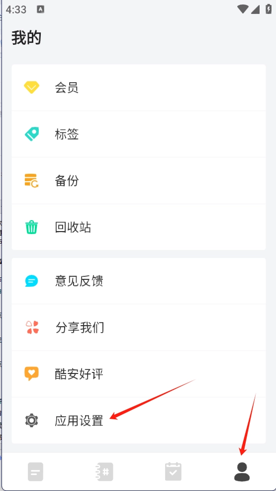 然后进入右下角个人中心,点击【应用设置】;