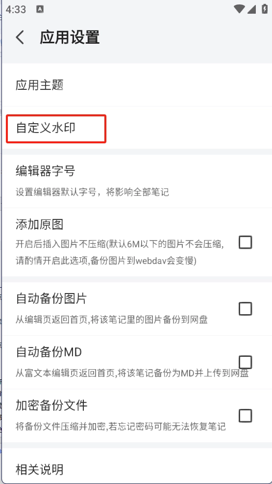在设置中心中点击【自定义水印】功能;