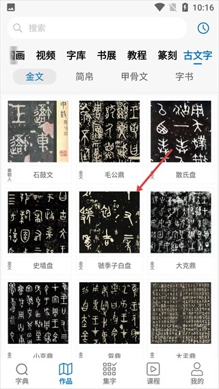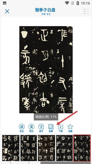 在【虢季子白盘】详情页,点击【临摹】按钮。