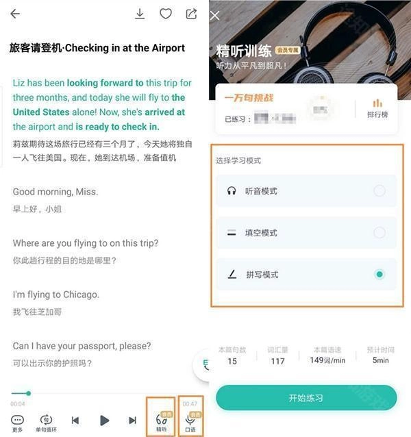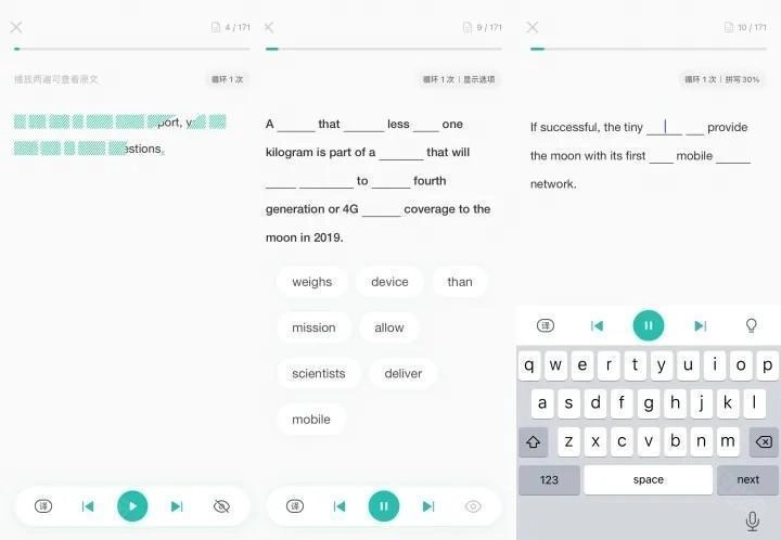 填空模式:系统会将内容设置为填空形式,你需要依据听到的内容选择对应的单词填入空缺处。