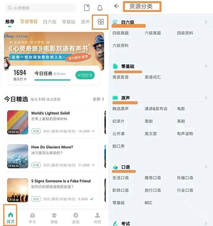 针对每篇文章,我们都会对不同等级(像四六级、雅思、托福这类)要求掌握的词汇进行高亮标注,这样能帮你更留意到那些实用的词汇。