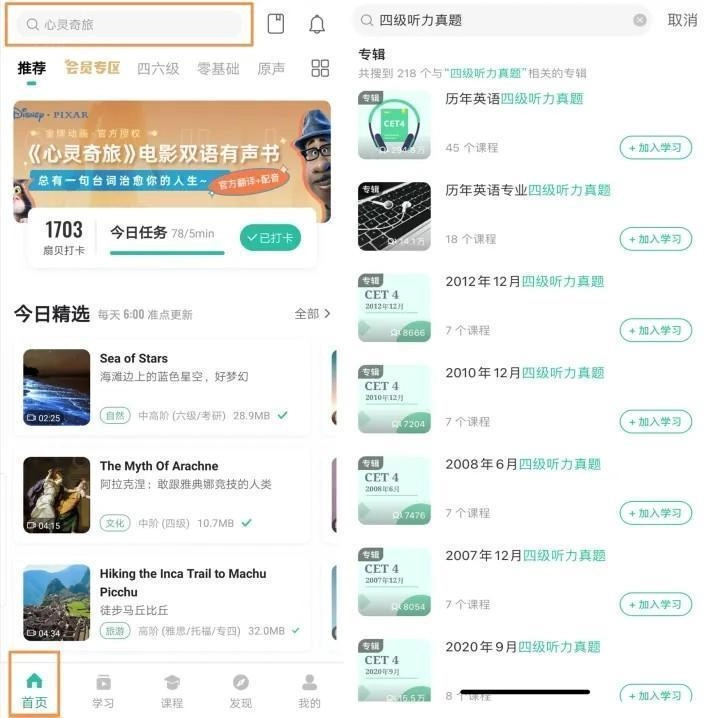 这里想特别夸一夸扇贝听力,它的资源库真的太丰富了,完全是个宝藏平台!像四六级、考研的真题听力,还有各类有声书、商务英语材料等等,应有尽有。而且它的难度划分特别合理,不管你是刚入门的英语小白,还是已经很厉害的英语达人,都能轻松找到适配自己水平的听力内容。