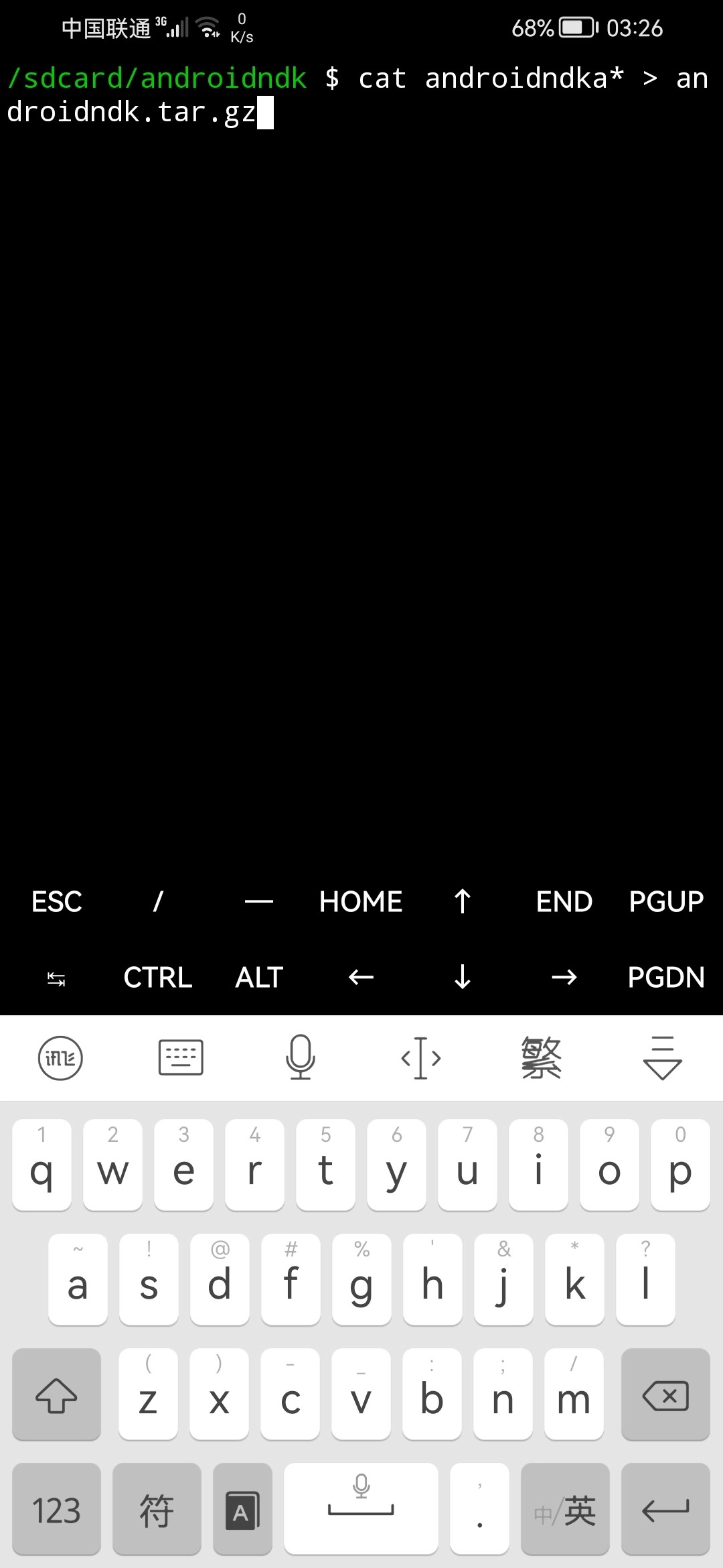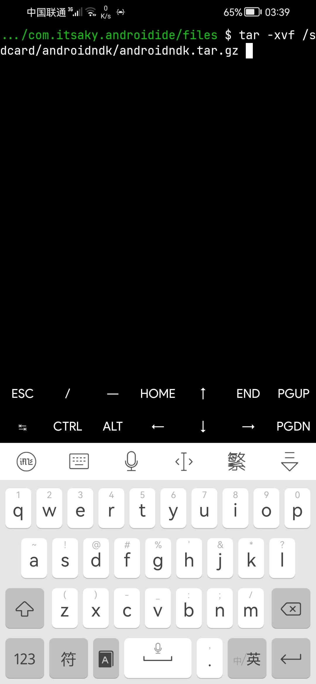 二、待所有文件都完成后,打开AndroidIDE终端,通过cd命令切换至对应目录,然后执行以下命令。