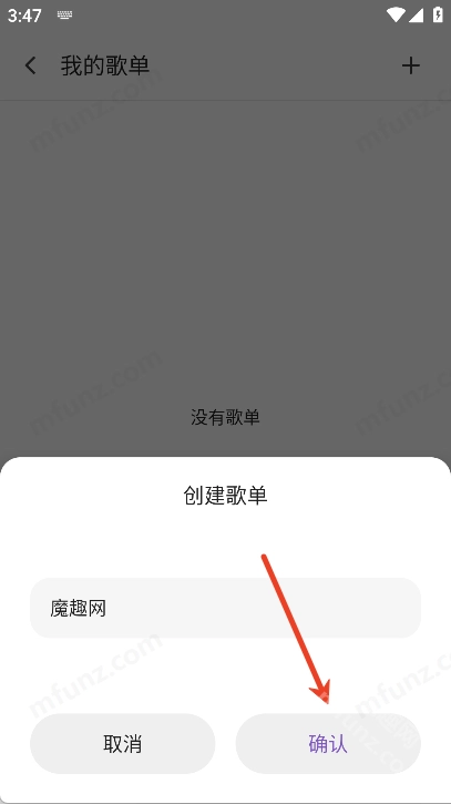 输入歌单名字点击确认即可