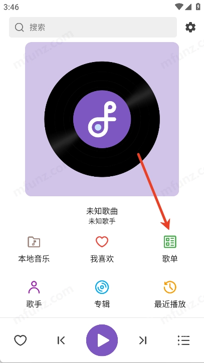 在主界面点击歌单栏目
