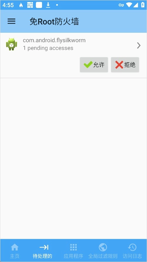在“待处理访问”列表里,你可以看到当前正在请求网络权限的应用,根据实际需求选择允许或者拒绝就可以了。